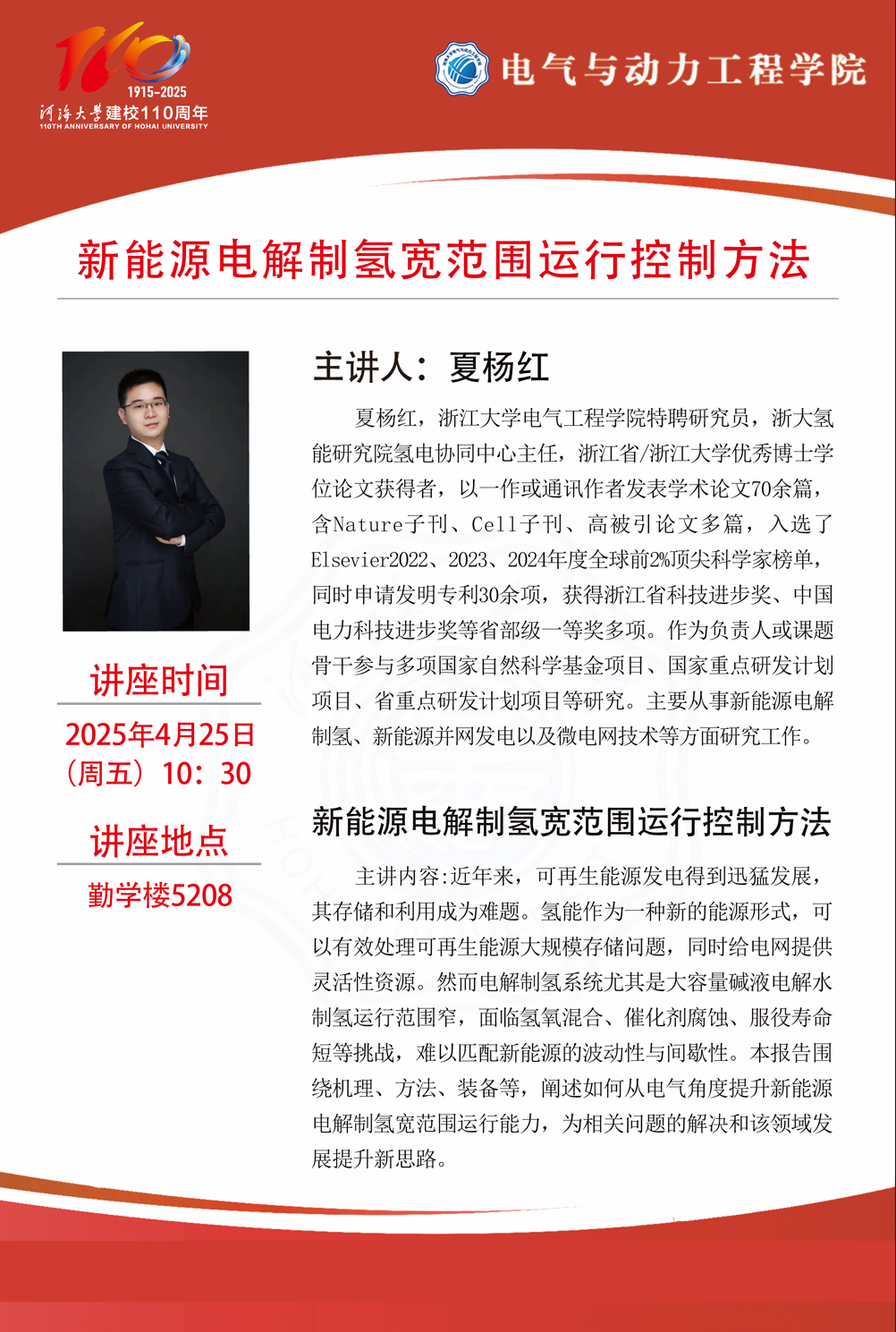 学术报告:新能源电解制氢宽范围运行控制方法