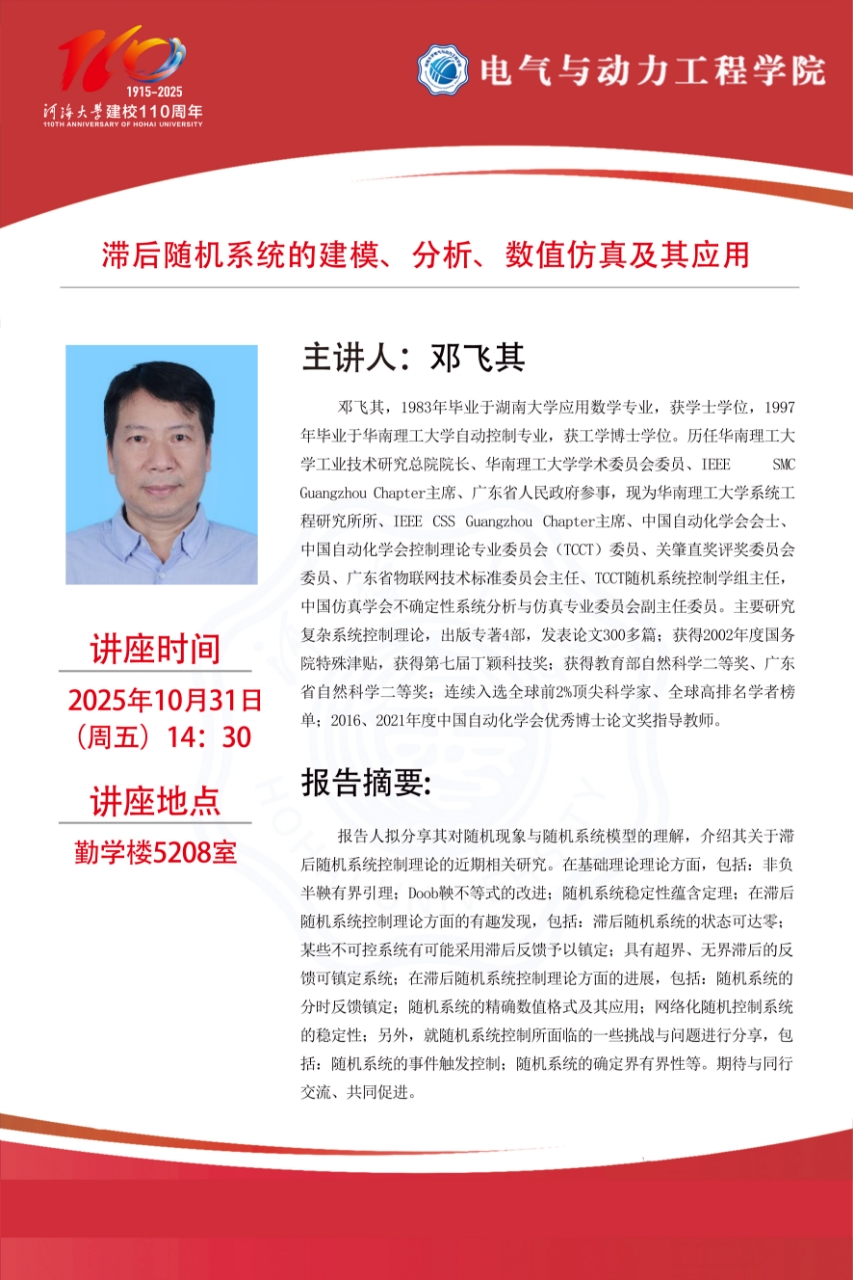 学术报告:滞后随机系统的建模、分析、数值仿真及其应用