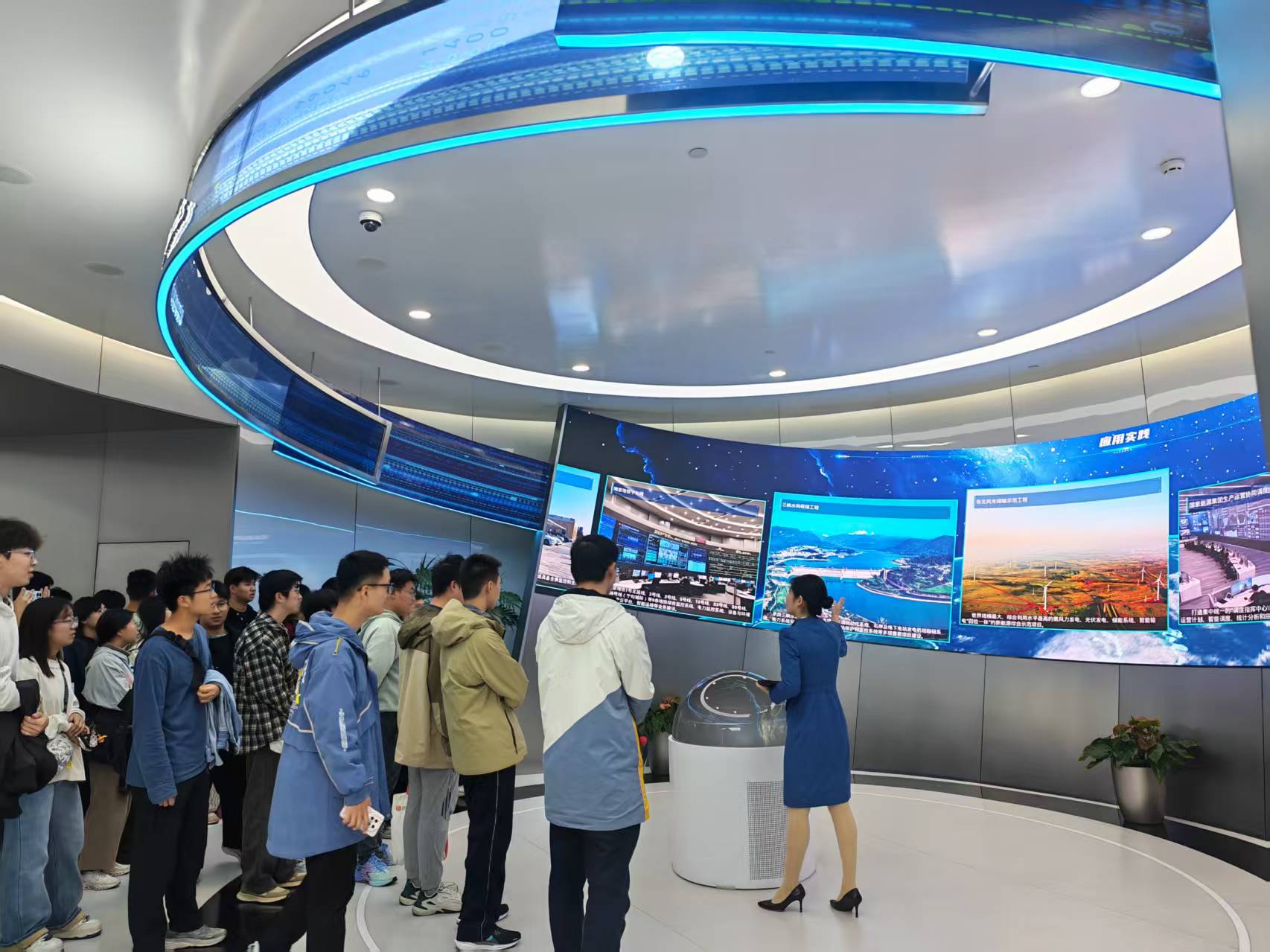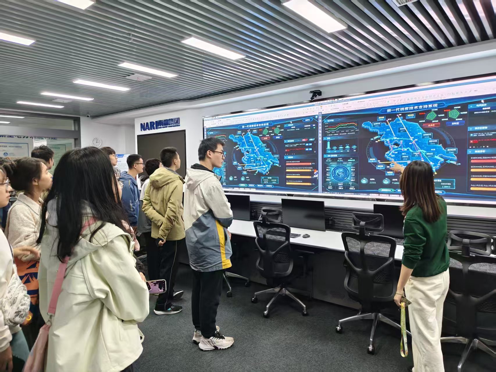 步入电网调试大厅,巨幕上跳动的故障协同处置系统界面、实时电力网络图谱,让同学们驻足。讲解员指向调度系统屏,解析电网故障定位、协同处置的技术逻辑,将课堂中的电力系统知识与实际运维场景精准衔接。