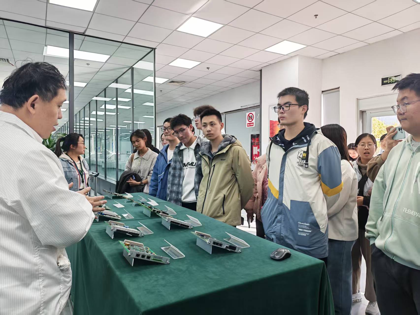 在南瑞智能制造生产中心,同学们围站在展桌前,听工程师详解电力电子设备的核心模块。目光掠过SMT高速产线的自动化设备,洁净车间里精准运作的画面,搭配大屏展示的生产规范,让大家直观触摸到能源装备制造的“硬核实力”。站在总书记参观过的地方,同学们对于“攻关高精尖技术,成就有价值人生”的殷切嘱托有了更深的体会与了解。